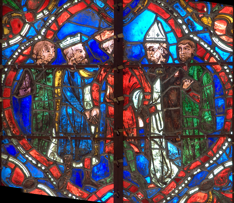 This shows the conclusion of Louis' diplomatic efforts to effect a reconciliation between the English king and his archbishop - see also the version of this scene at Sens