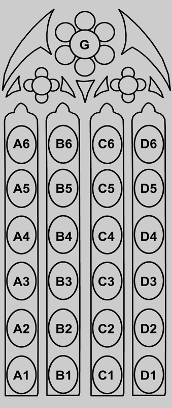 of the Evangelist (D2 and A3). A similar, though less dramatic, pair made from the same cartoon are C5 and B6.